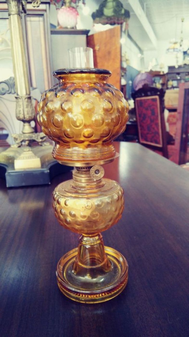 Victorian amber miniature oil lamp $155 - By: